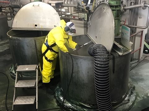 Wir reinigen Anlagen in Produktionsbetrieben, Abfallwirtschaft und industriellen Umgebungen – auch wenn Gefahrstoffe, Atemschutz oder Explosionsschutz erforderlich sind. Unser Fachpersonal ist entsprechend geschult und ausgerüstet.